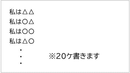 - 「私は」に続けて、自分について思うままに1つごとに行を変え20の文を考えて書きます。
