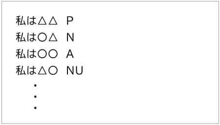 - 1つできたら次の1つを書き写して同様にして、NとAだった文すべてについてします。