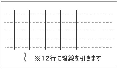 ノートを使います。まず12行を使って4列の線(5本の線)を引きます。