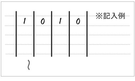 次の40の質問について、1行に4問ずつ順に回答を記入します。