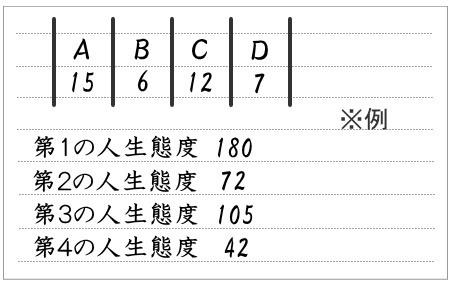 - 第1の人生態度=Aの点数×Cの点数