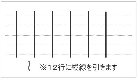 まず、1行目に「自我状態の分析、普段の一般的な自分」と書いて、その下の12行を使って5列の線(6本の線)を引きます。