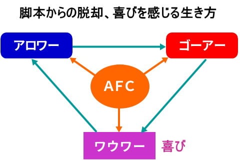 それが進むと『AFC(allower FC、許可された自由な子ども)』が働きだして、人生脚本のドライバー、ストッパーが消えます。