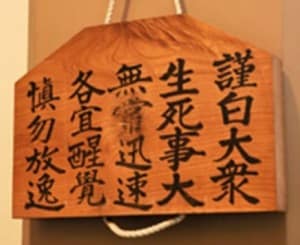 読み方は 「生死事大 無常迅速 各宜しく覚醒し 慎んで放逸する事勿れ」(しょうじじだい、むじょうじんそく、おのおのよろしくかくせいし、つつしんでほういつすることなかれ)。