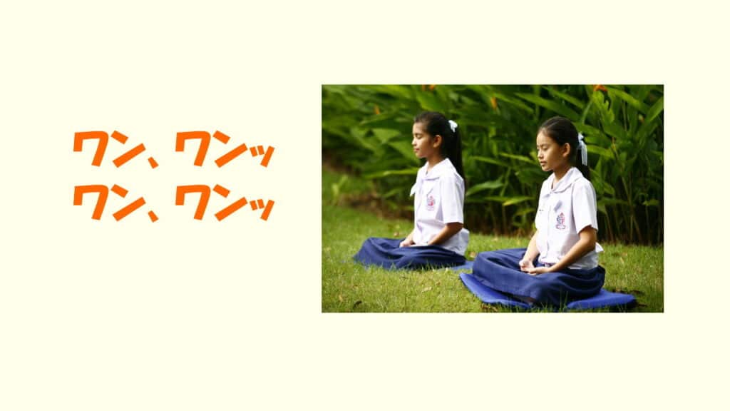 ヴィパッサナー瞑想はその音を何の音と知ろうとしたり、よく聞こうとするのではなく、自分の内に現れている音を受け取っていることや聞き取ろうとしている意識や犬の声と判断して認識したことなどにただ気づきます。